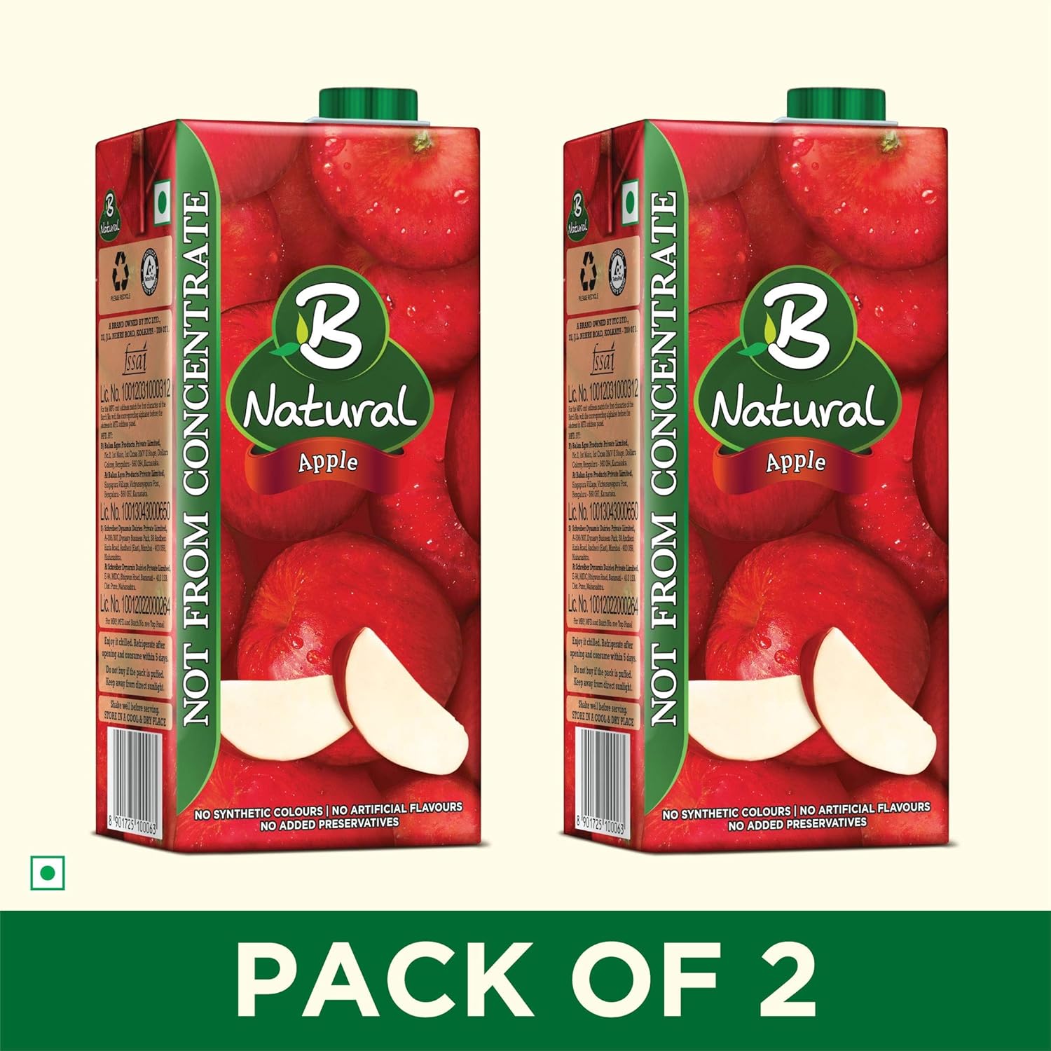 B Natural Apple Juice 1L, (Pack of 2) Rs.66