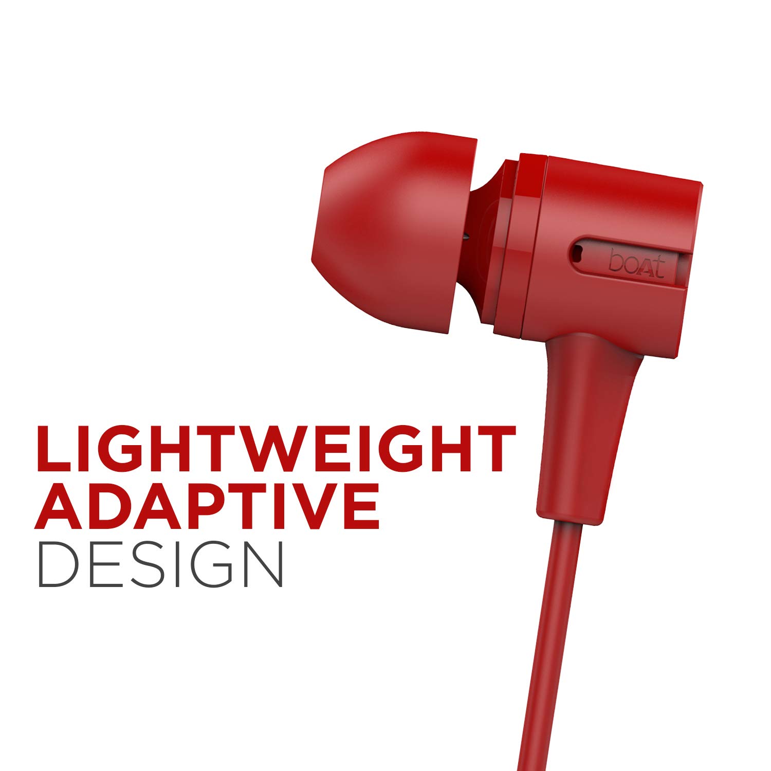 boAt BassHeads 102 Wired Earphones with Immersive Audio, Multi-Function Button, in-line Microphone & Perfect Length Tangle Free Cable (Fiery Red) Rs.299