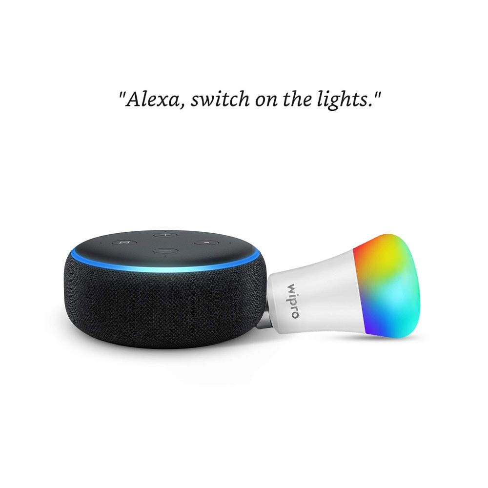 Echo Dot (Black) Combo with Wipro 9W LED Smart Color Bulb - Smart Home Starter Kit